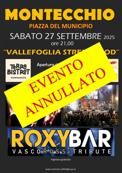 L’evento previsto per oggi, sabato 27 settembre 2025, con il concerto della band “RoxiBar” alle ore 21:00 in Piazza del Municipio, è ANNULLATO.