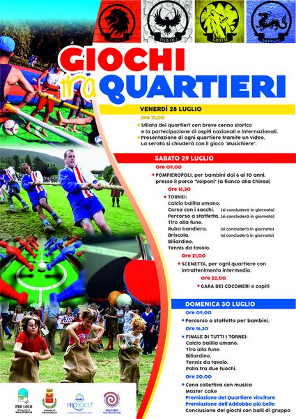 Quattro i quartieri che si sfideranno nelle varie discipline sportive che coinvolgeranno grandi e piccini: Centro Storico, Grotte, Parioli e Shangai.