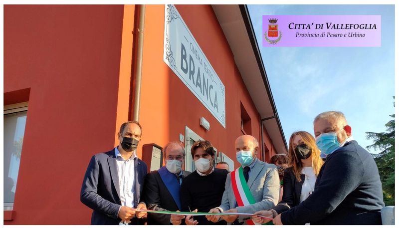Il Sindaco della Città di Vallefoglia Sen. Palmiro Ucchielli comunica che sabato 2 ottobre 2021 è stato ufficialmente inaugurato a Sant’Angelo in Lizzola il Cinema Teatro “Giovanni Branca” dopo i lavori di ristrutturazione e di messa in sicurezza che l’hanno interessato alla presenza del Vice Presidente del Consiglio della Regione Marche Andrea Biancani e del Presidente dell’Amministrazione Provinciale di Pesaro e Urbino Giuseppe Paolini.