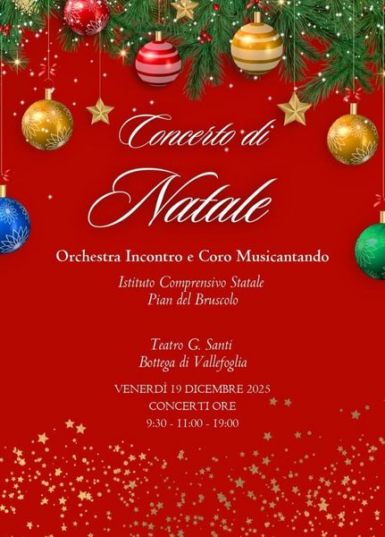 Il Sindaco della Città di Vallefoglia, Sen. Palmiro Ucchielli, insieme all’Assessore alla Cultura Dott. Mirco Calzolari e all’Assessore all’Istruzione Avv. Barbara Torcolacci, è lieto di annunciare un ricco calendario di appuntamenti in programma al Teatro “Giovanni Santi” di Bottega a partire da questa sera, mercoledì 17 dicembre 2025, fino a domenica prossima.