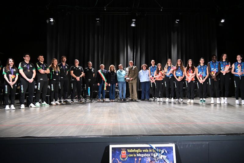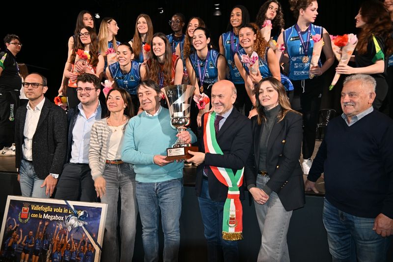 Il Sindaco della Città di Vallefoglia, Sen. Palmiro Ucchielli, l’Assessore allo Sport Dott. Mirco Calzolari e tutta l’Amministrazione Comunale hanno accolto ieri, 25 marzo 2026, al Teatro Santi di Bottega, le campionesse della Megabox Ondulati Del Savio Vallefoglia, insieme alla società al completo, per festeggiare con i ragazzi delle scuole, le autorità e i cittadini la straordinaria vittoria della CEV Challenge Cup.