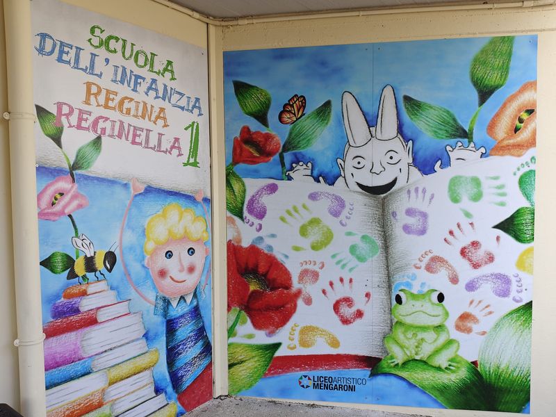 Questa mattina, 6 novembre 2025, alla Scuola dell’Infanzia “Regina Reginella 1” di Montecchio, si sono vissuti momenti di grande gioia e partecipazione tra bambini, insegnanti e genitori, in occasione del taglio del nastro dei nuovi murales che da oggi donano colore e vitalità alla struttura scolastica.